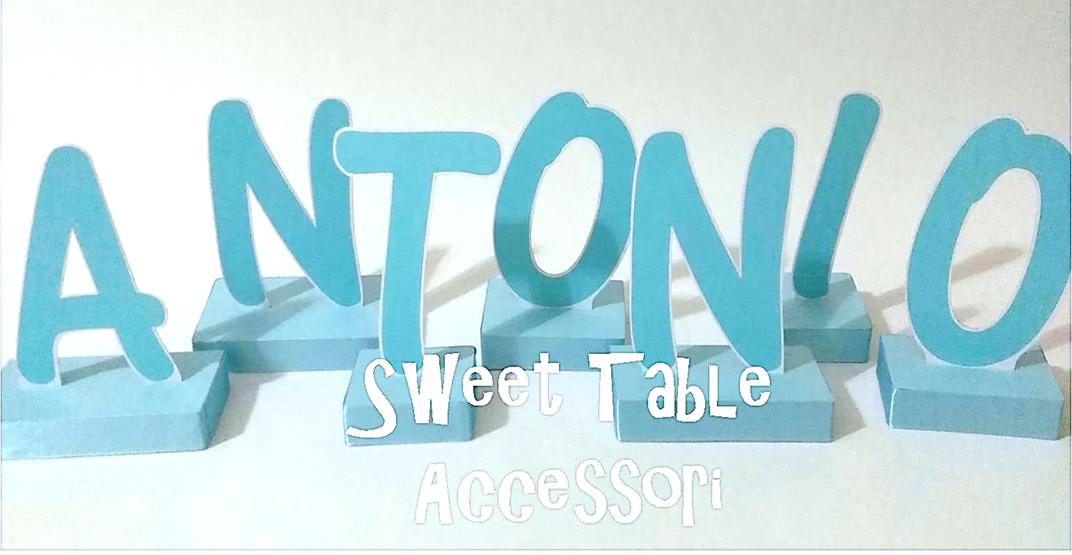 Decora il tuo tavolo torta con un simpatico nome in cartoncino, realizzabile con colori e decorazioni che si adattano al tema della festa!!