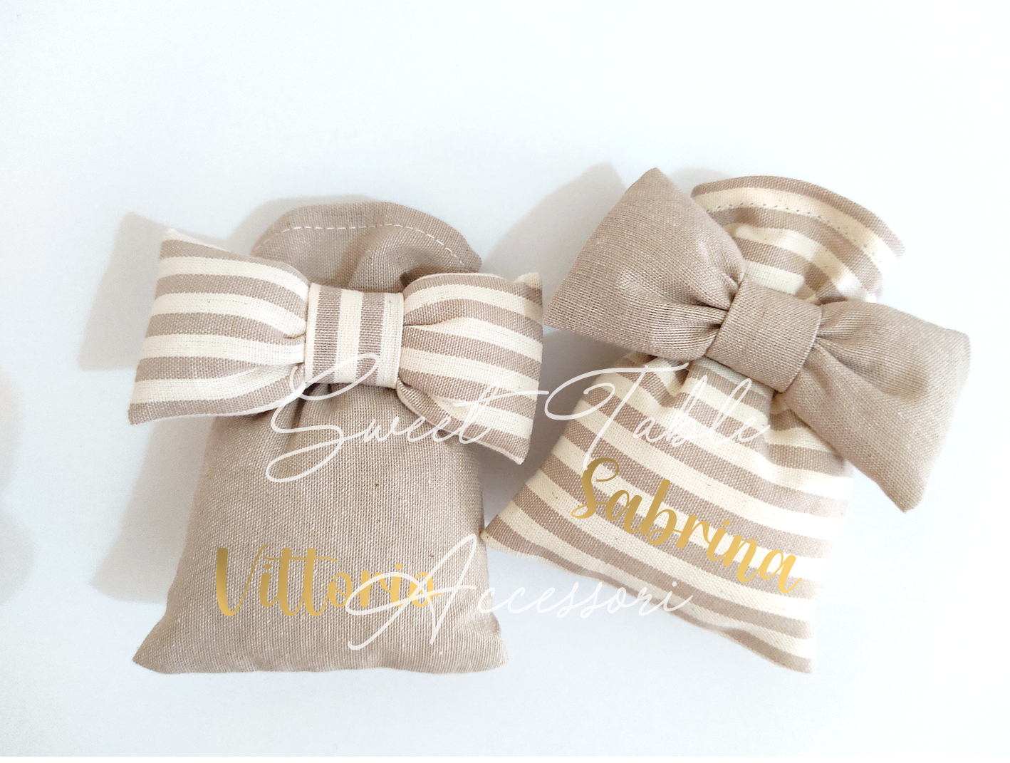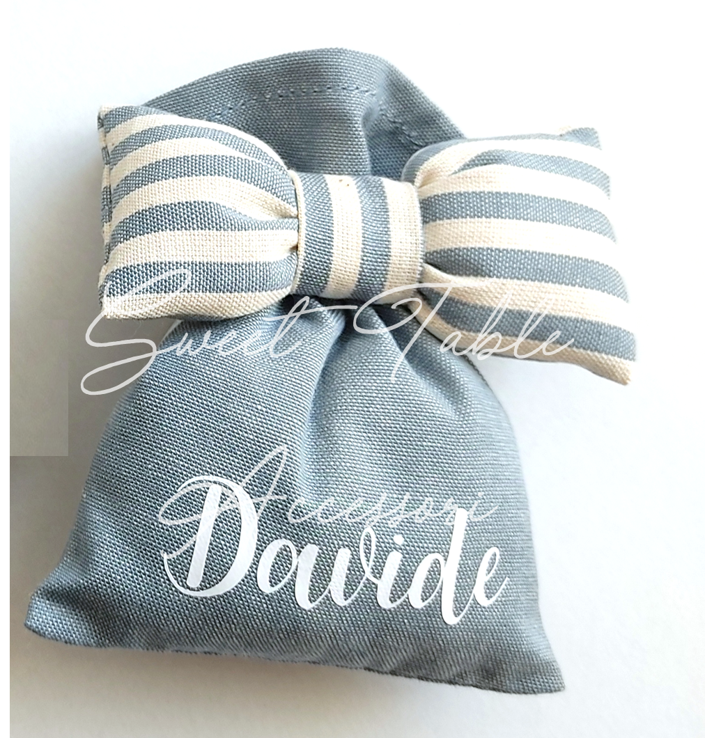 Contattaci per prenotare i sacchettini per il tuo evento, puoi scegliere tra quelli vuoti solo imbottiti con ovatta, che potrai avere già confezionati o semplicemente da chiudere con il nastrino (se desideri inserire qualcosa all'interno) oppure completi di confetti e tag personalizzato abbinato ai colori del sacchetto (vedi foto d'esempio) !!