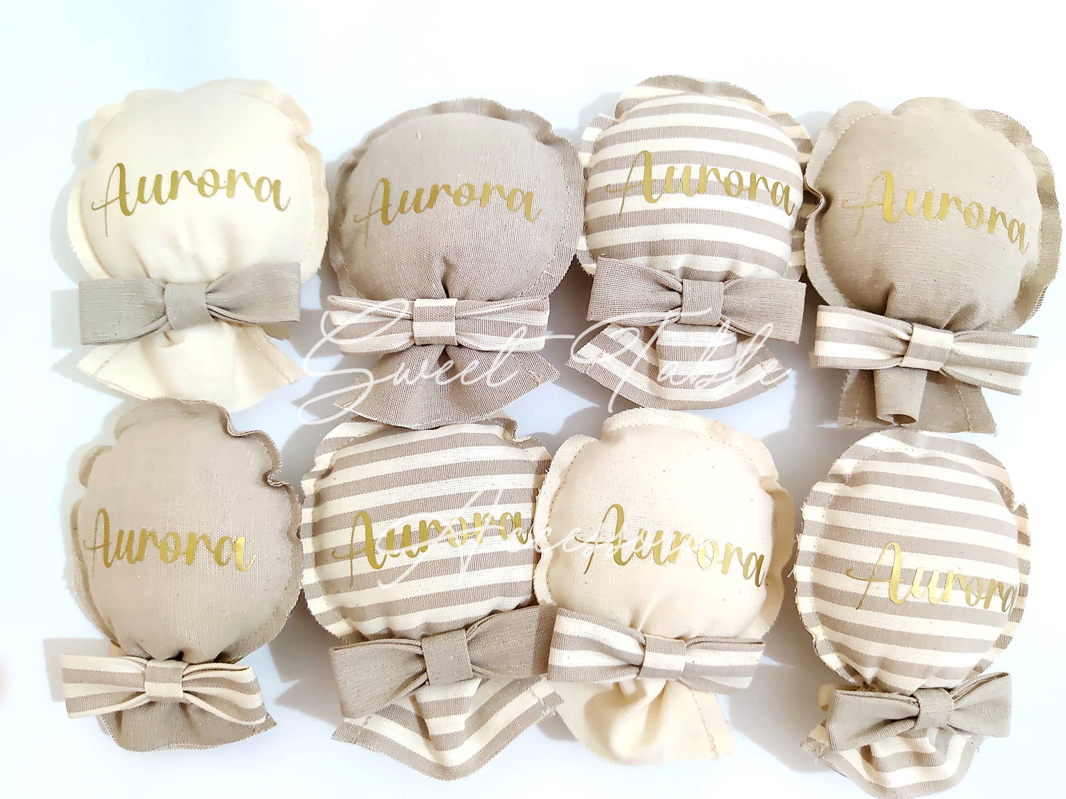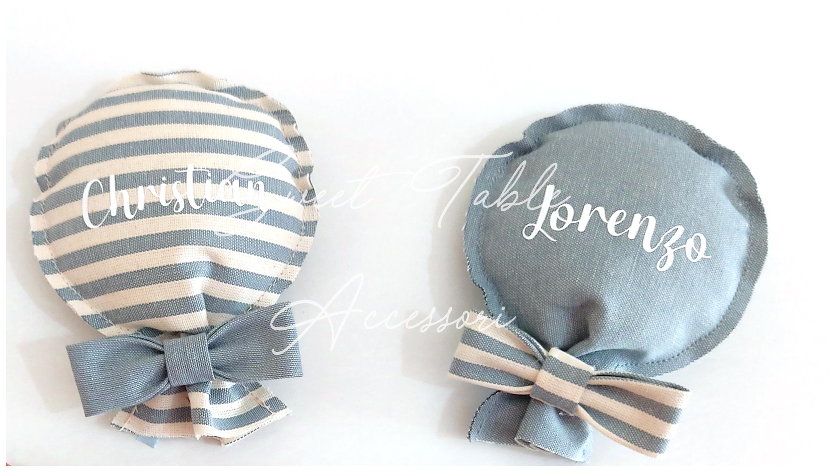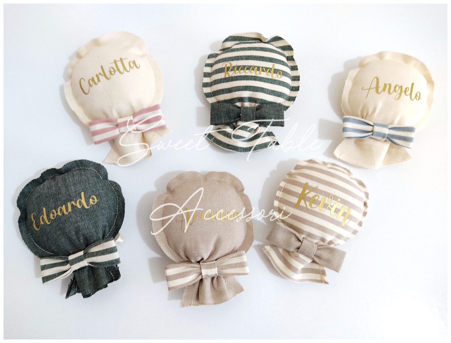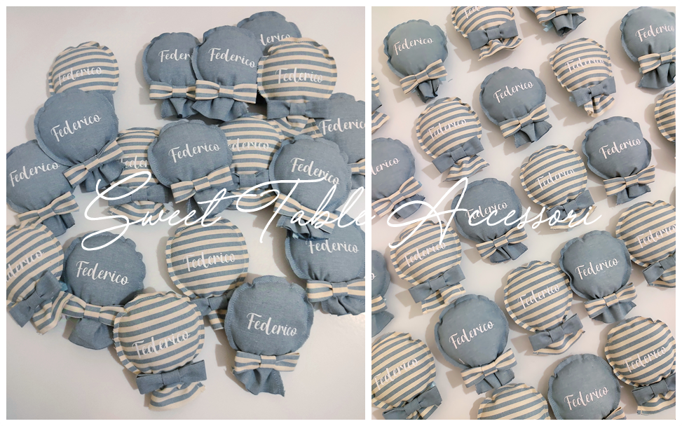 Sacchettino artigianale forma palloncino ideale per Nascita o Battesimo, perfetto da regalare agli invitati come segnaposto o bomboniera!! Disponibile vuoto e imbottito con ovatta o completo di confezione con 5 confetti e tag.