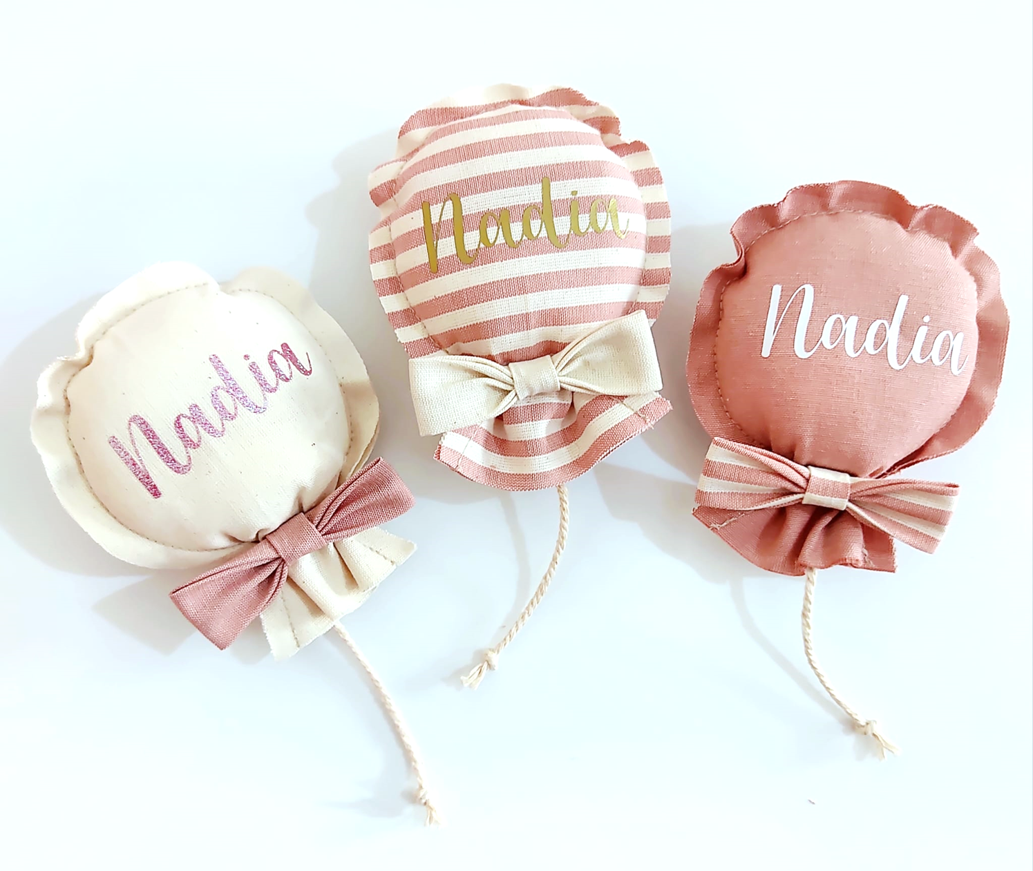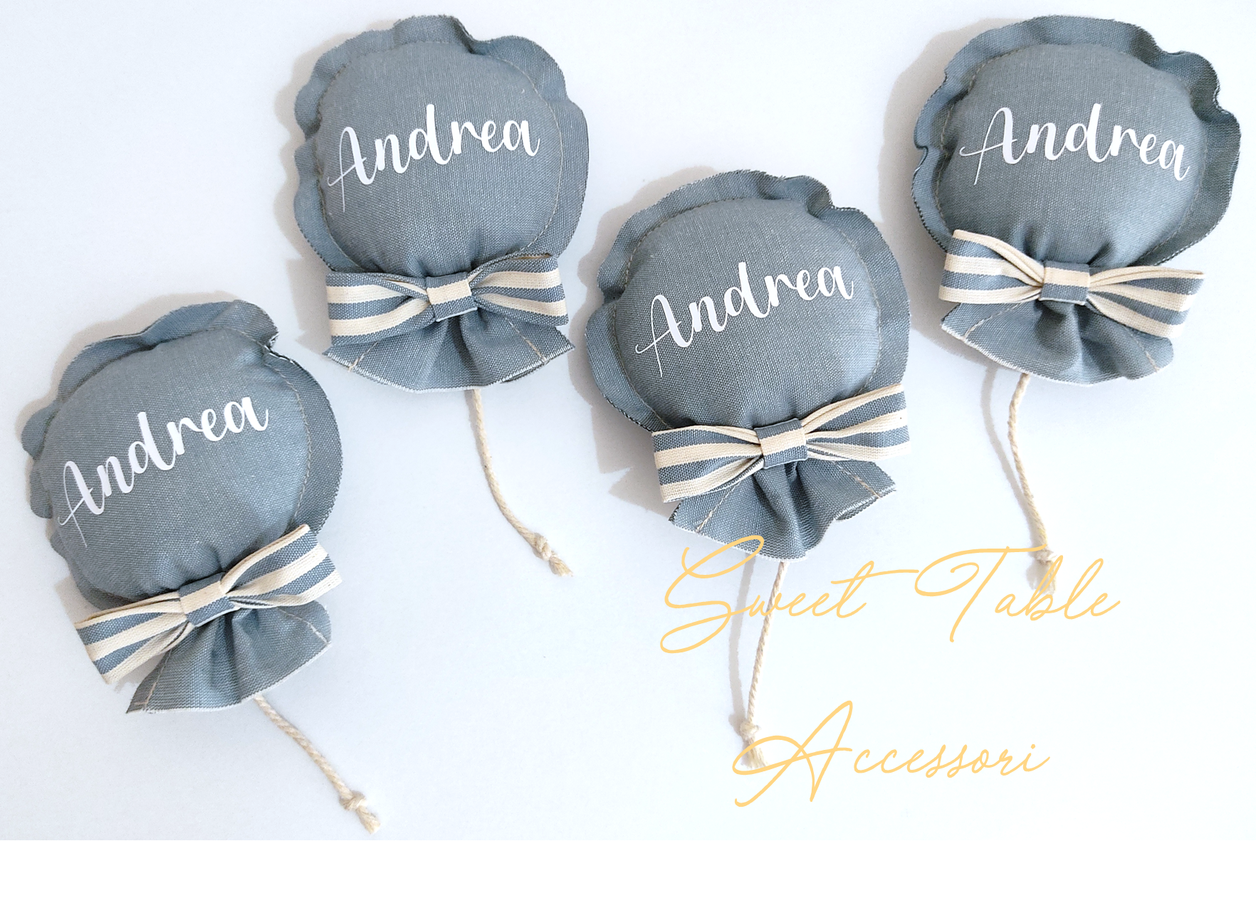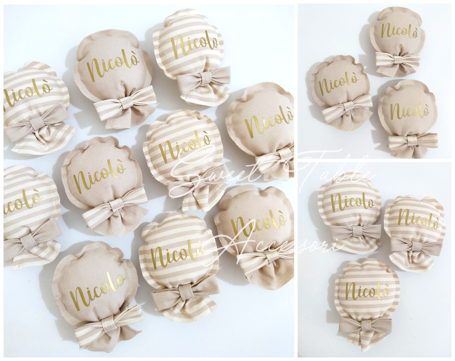 Sacchettino artigianale forma palloncino ideale per Nascita o Battesimo, perfetto da regalare agli invitati come segnaposto o bomboniera!! Disponibile vuoto e imbottito con ovatta o completo di confezione con 5 confetti e tag.