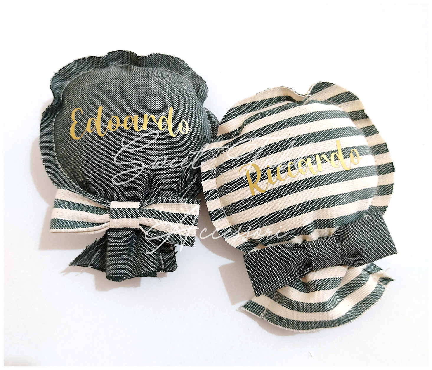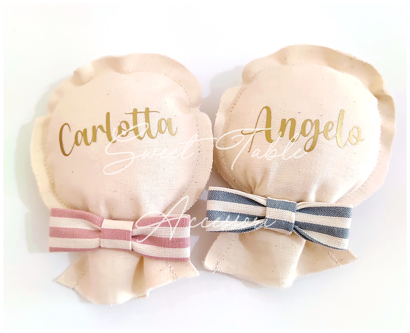 - Personalizzazione: Possiamo personalizzare il sacchettino con in nome del bimbo e il tag con un breve testo. Dopo aver effettuato l'acquisto verrai contattato per definire i dettagli oppure se preferisci o hai altre domande puoi contattarci anche prima!!